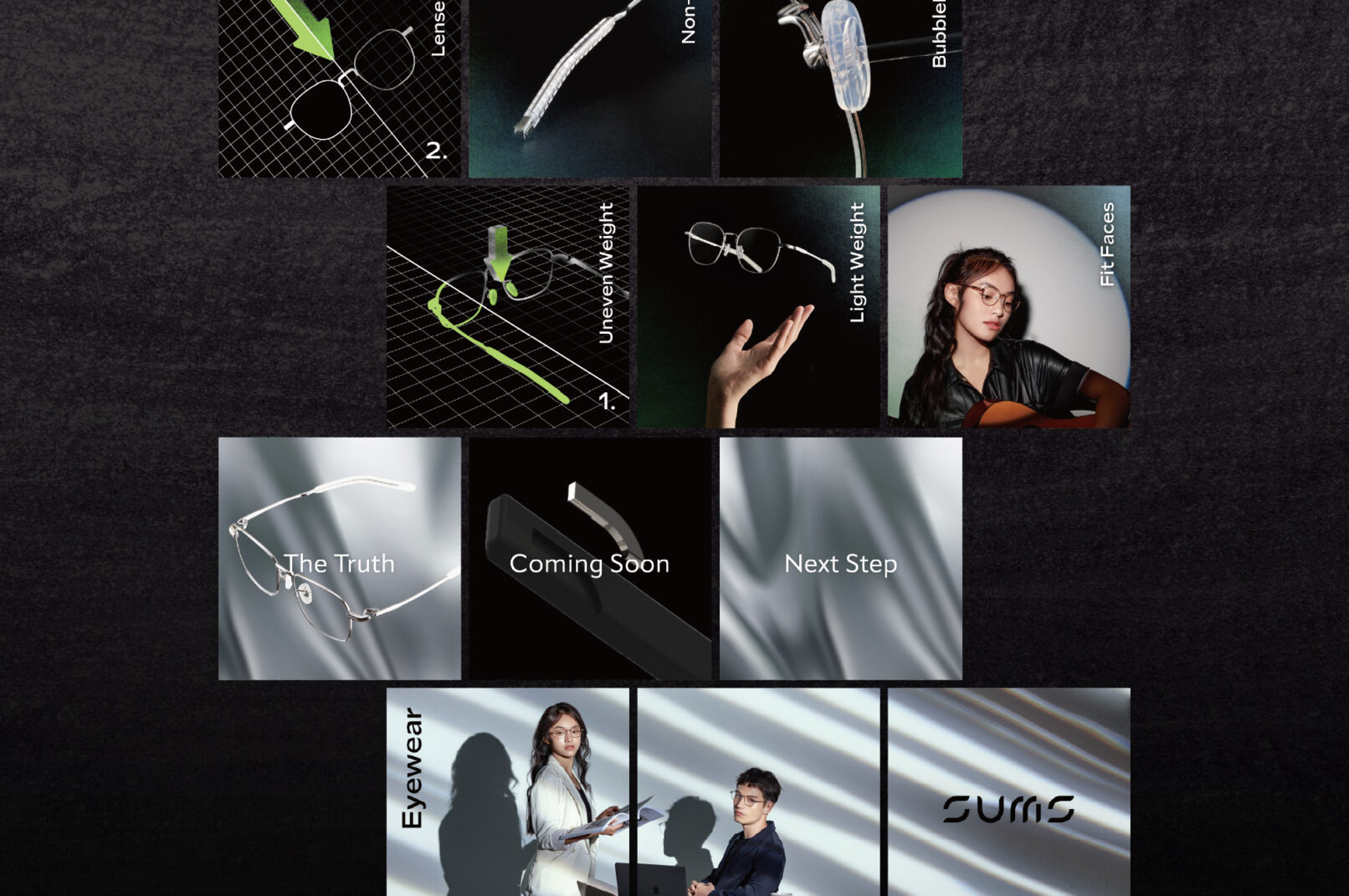 SUMS is the ergonomic eyewear brand commit-ted to maximizing wearer comfort and breaking down the barriers of wearability. We believe in innovation, comfort, freedom and fashion. Inspired by the diversity and different opinions of eyewear customers everywhere.